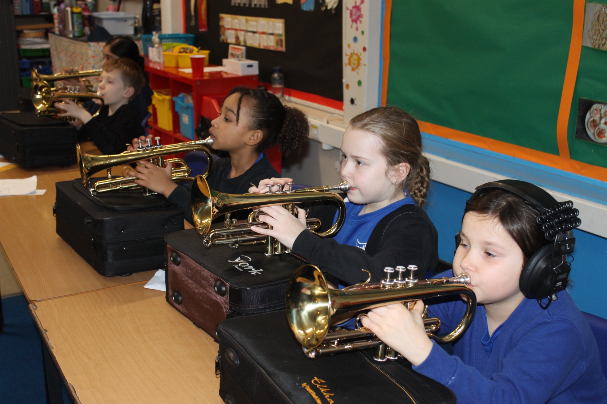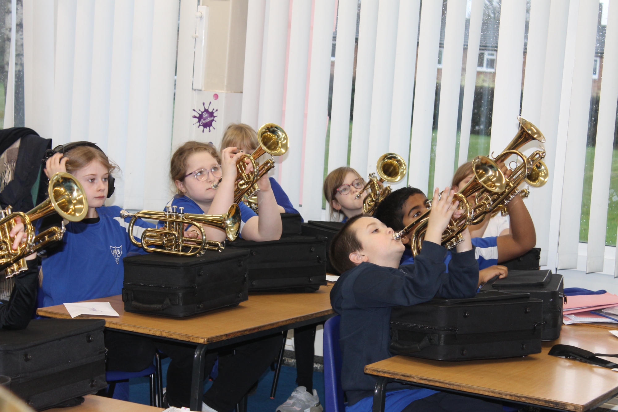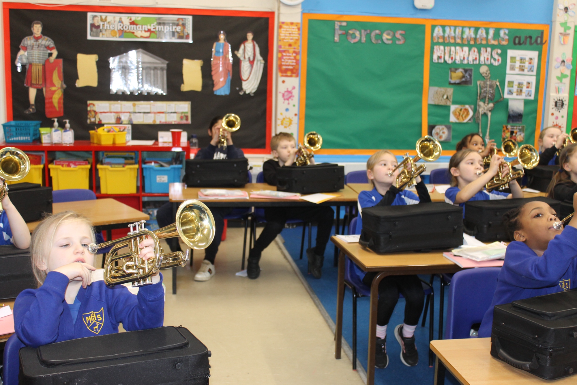 In cornets this week, we have been learning new notes, focusing on high and low-pitched sounds. We were able to play notes together using a diagram showing high and low notes. We took turns to be a queen or king to guess the sequence of high and low notes that the class were playing.