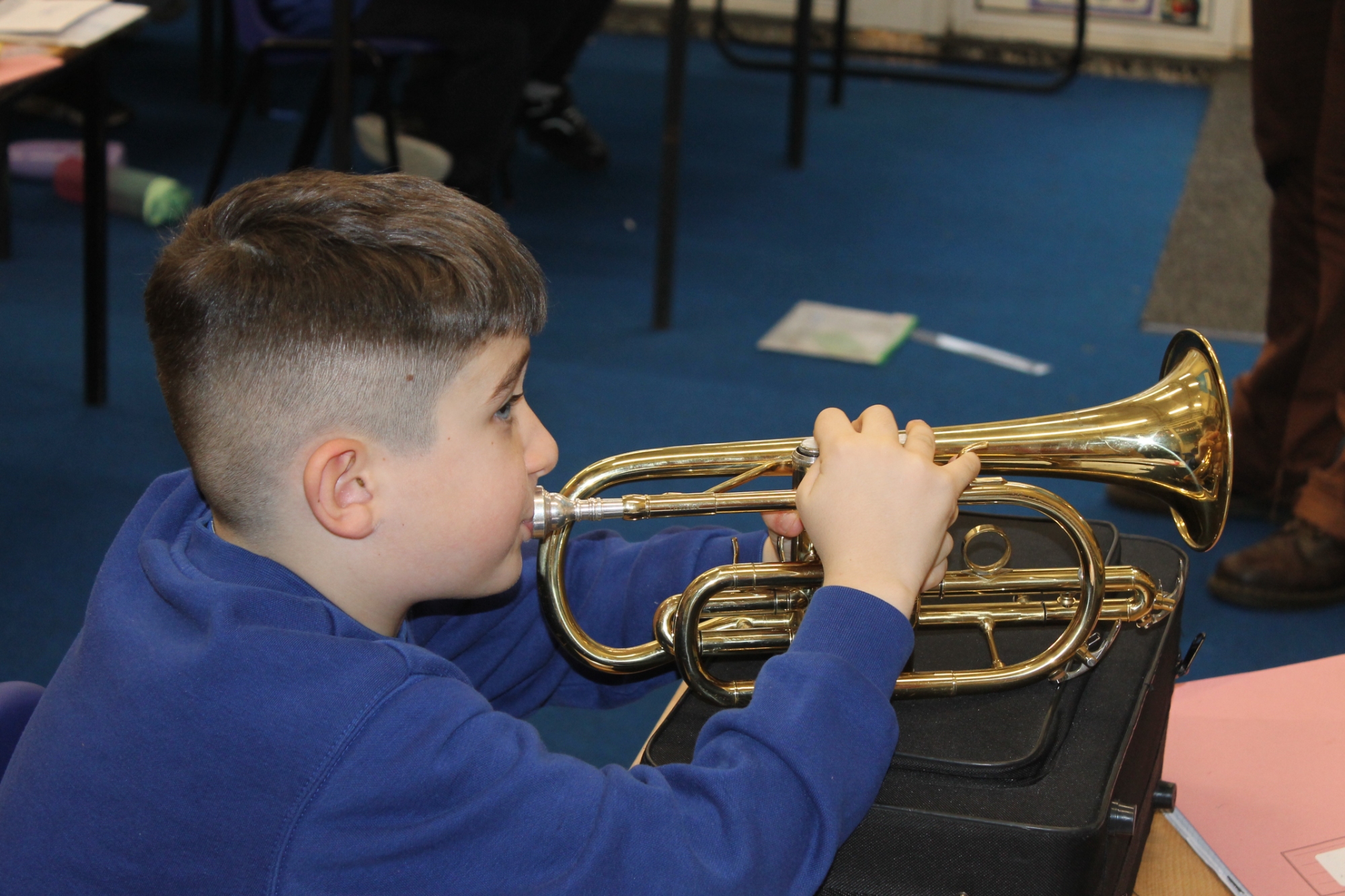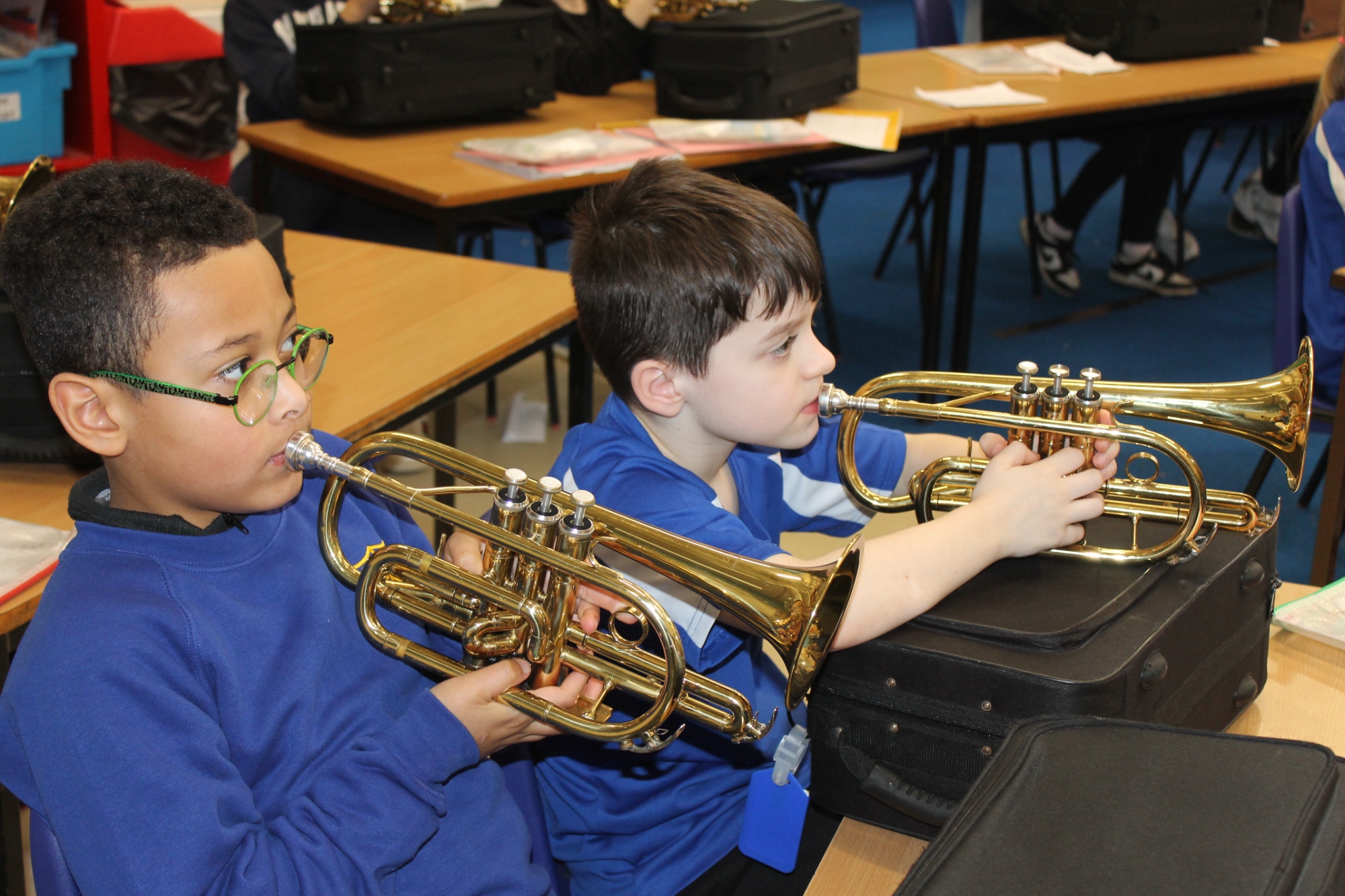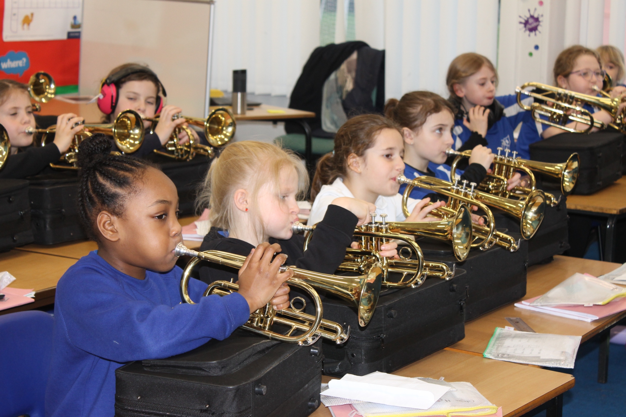 In cornets this week, we have been learning new notes, focusing on high and low-pitched sounds. We were able to play notes together using a diagram showing high and low notes. We took turns to be a queen or king to guess the sequence of high and low notes that the class were playing.