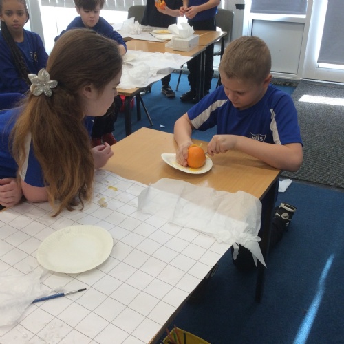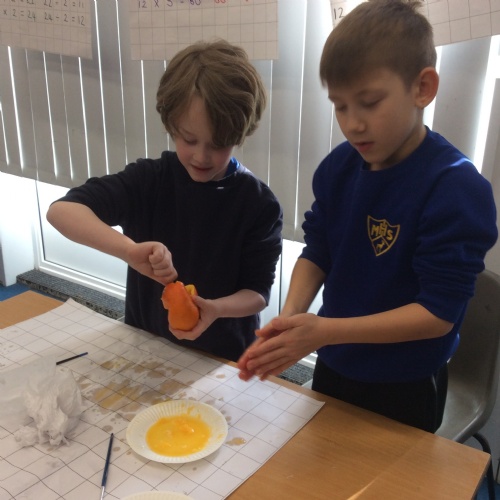 In Science, we have set up an ‘eggsperiment’ to investigate which liquids are healthy and unhealthy for your teeth. We have submerged six eggs in a range of different liquids including water, toothpaste, vinegar, coke, milk and orange juice, in order to see the effect of each liquid on the teeth. We have made predictions about which liquids will be healthiest and unhealthiest and will continue to monitor the effects of the liquids on the eggs over the coming weeks. Watch this space for the results!