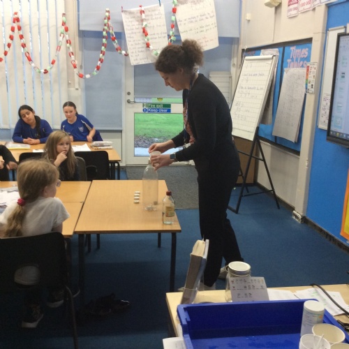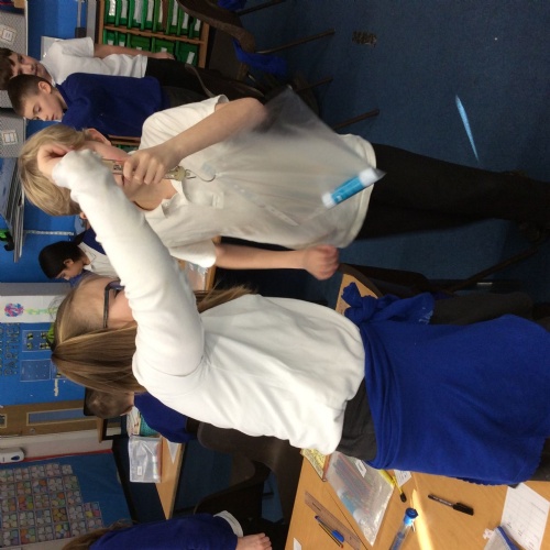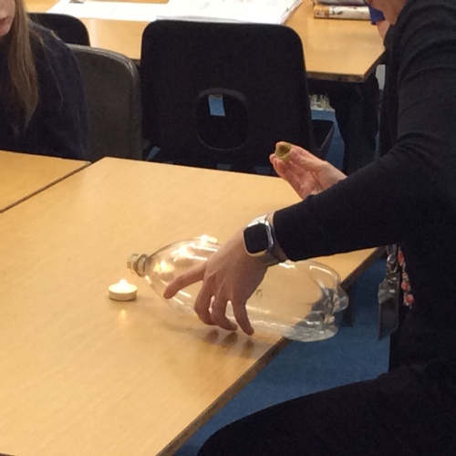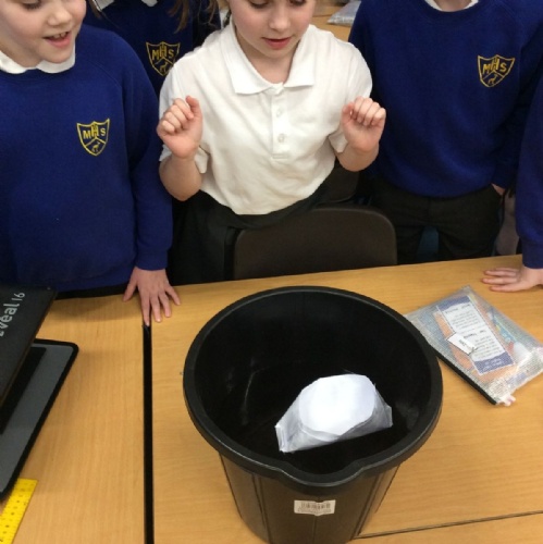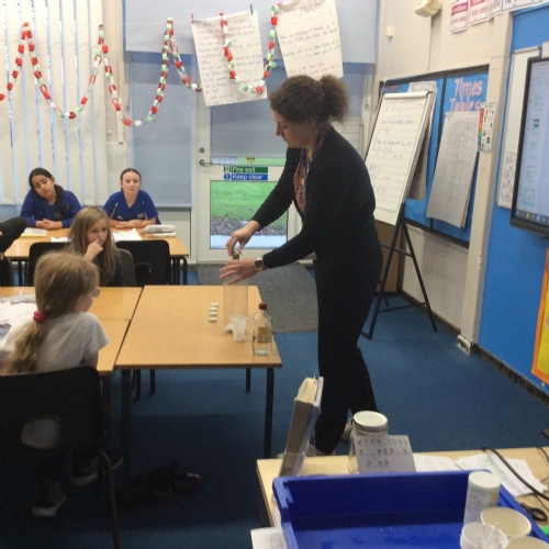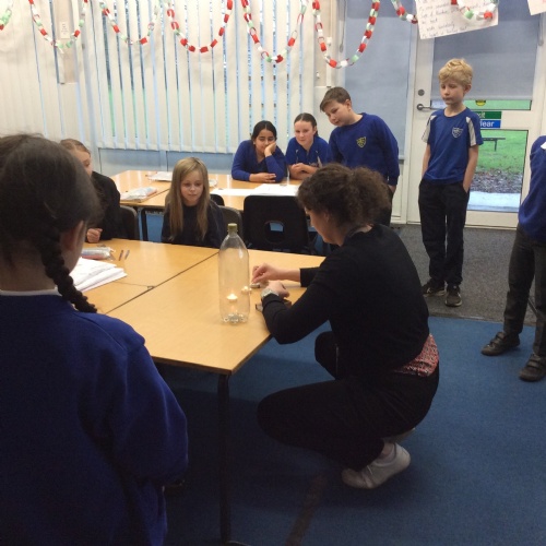 In science, we learnt about irreversible changes. The children observed what happens when baking powder is added to vinegar and then saw that carbon dioxide is used as Miss Summers used the gas created as a fire extinguisher to put out some tea light flames.