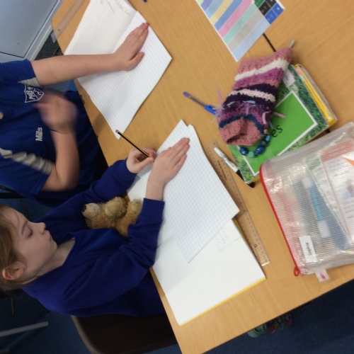 Today we learnt about using squares to estimate area and compared the area of one of our feet and one of our hands to see which had the greatest area. The children showed great determination with this!