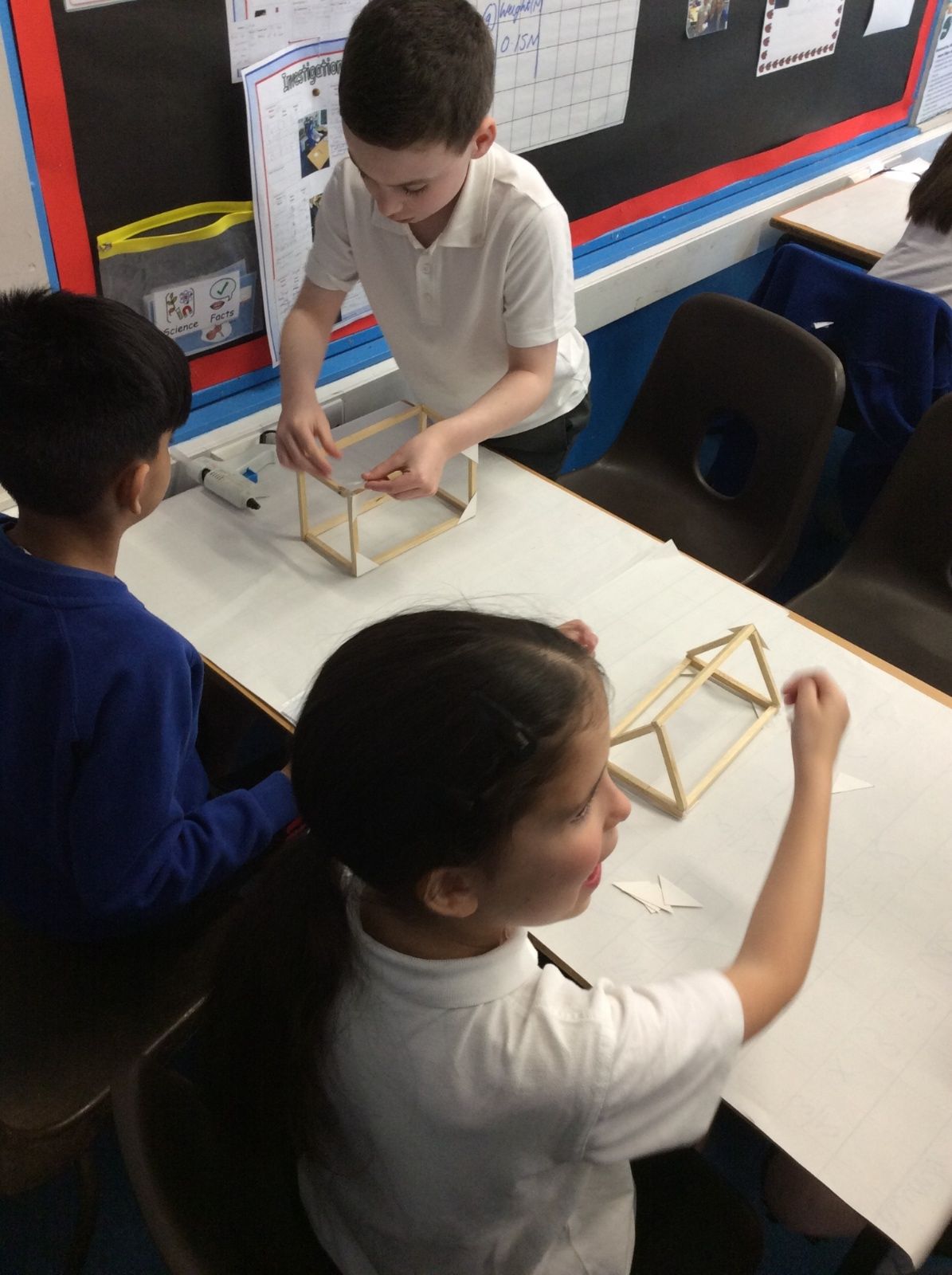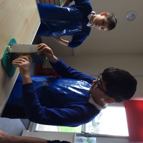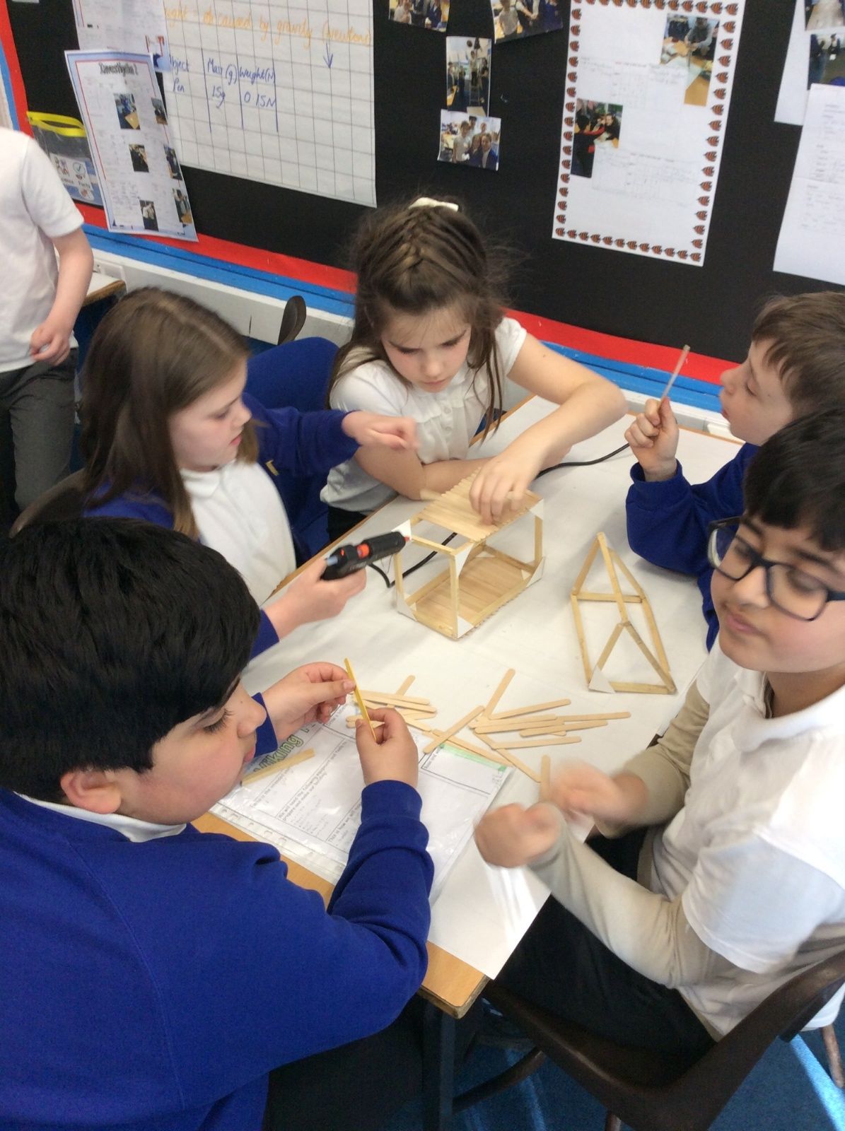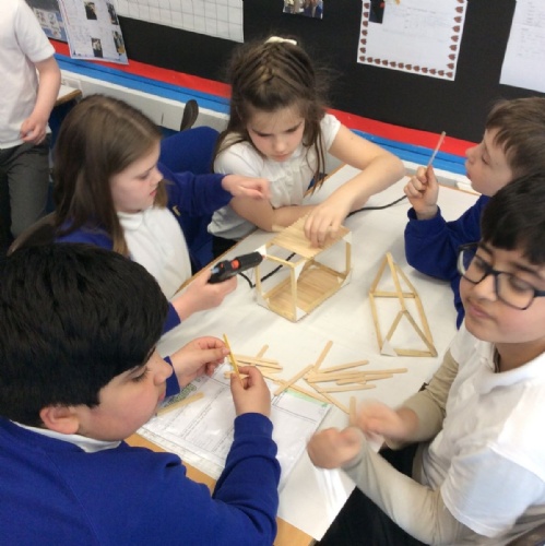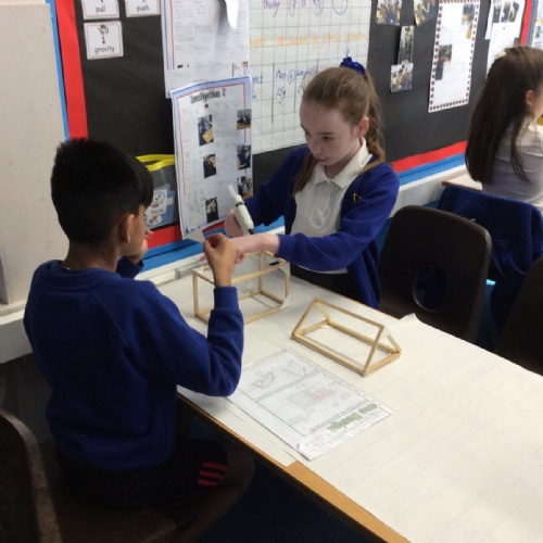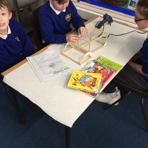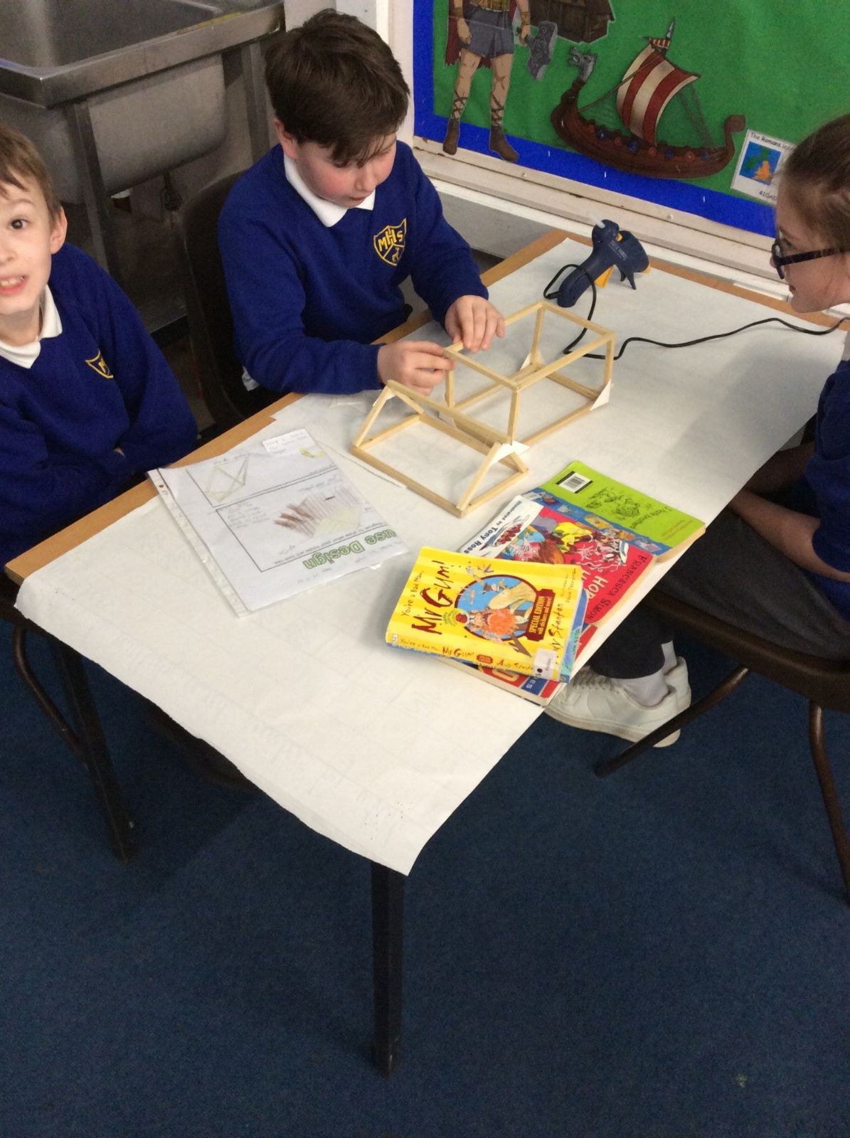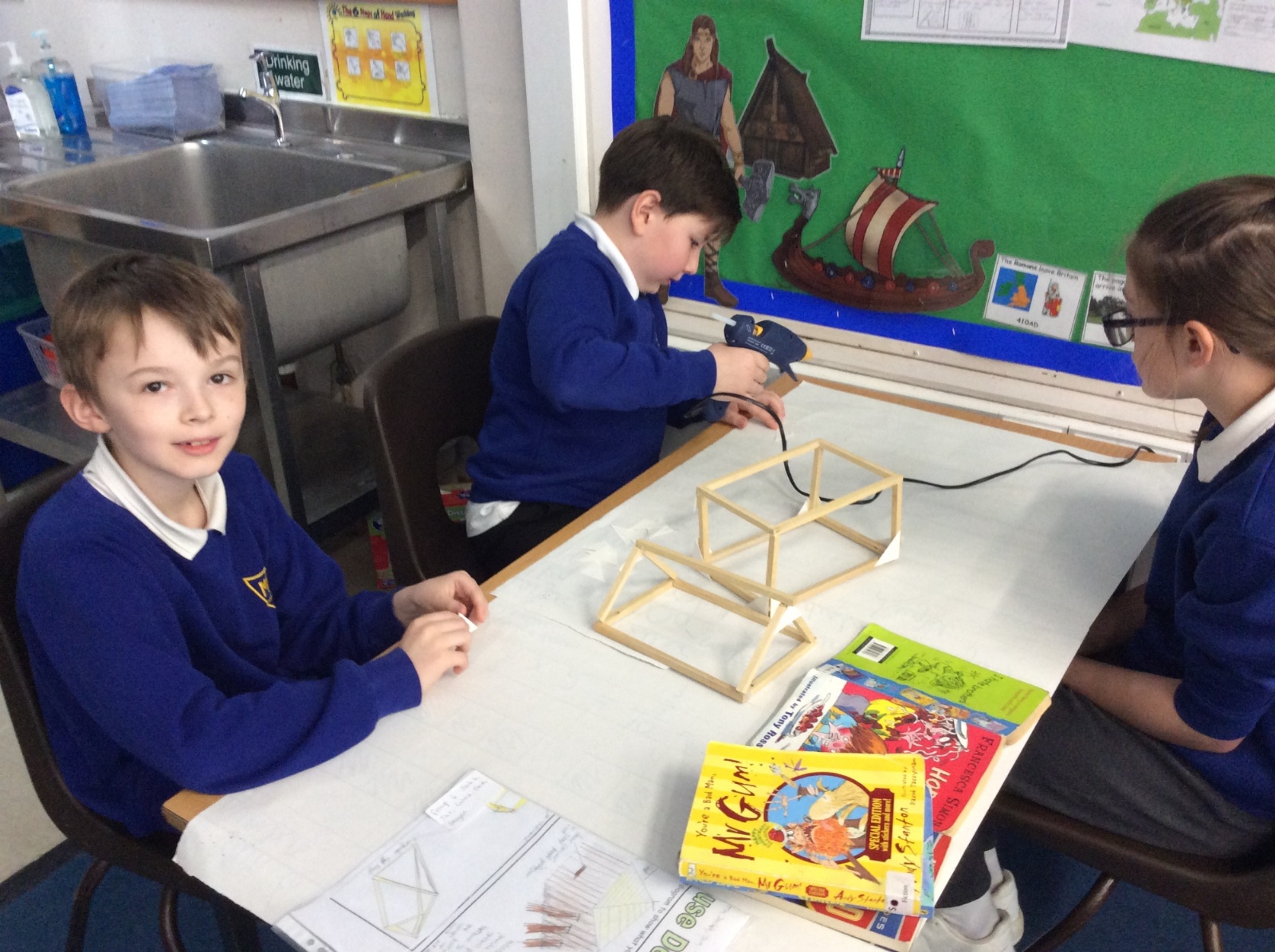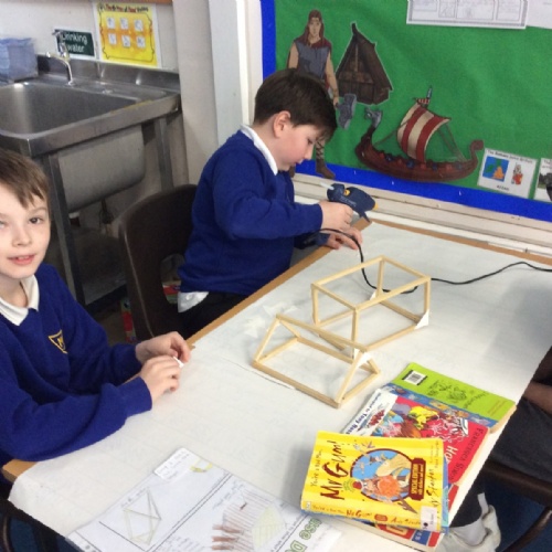 In DT, we have continued to build our Viking Houses by glueing the woodwork together. We were taught how to use a glue gun safely and worked well together to start the construction of the houses.