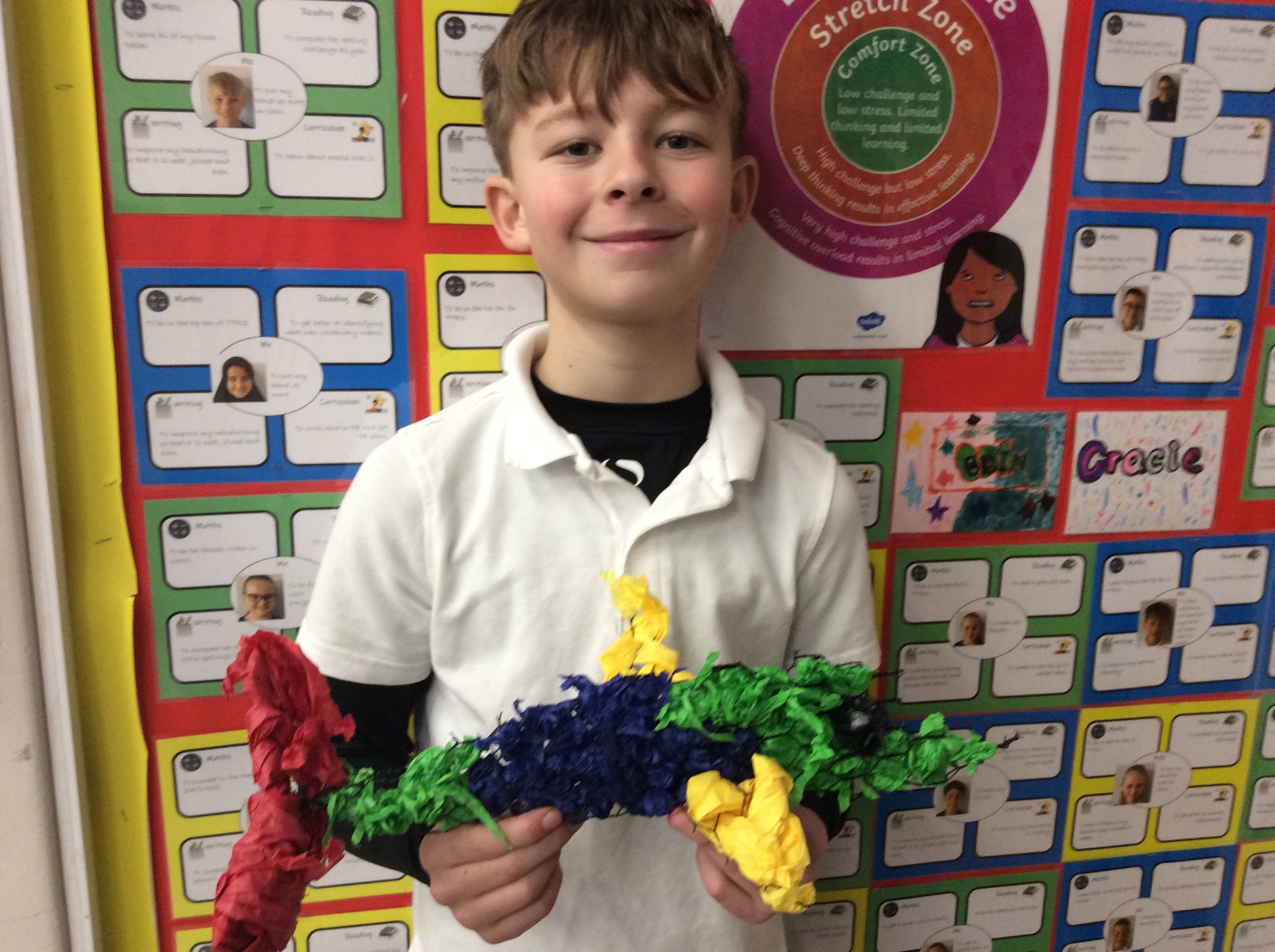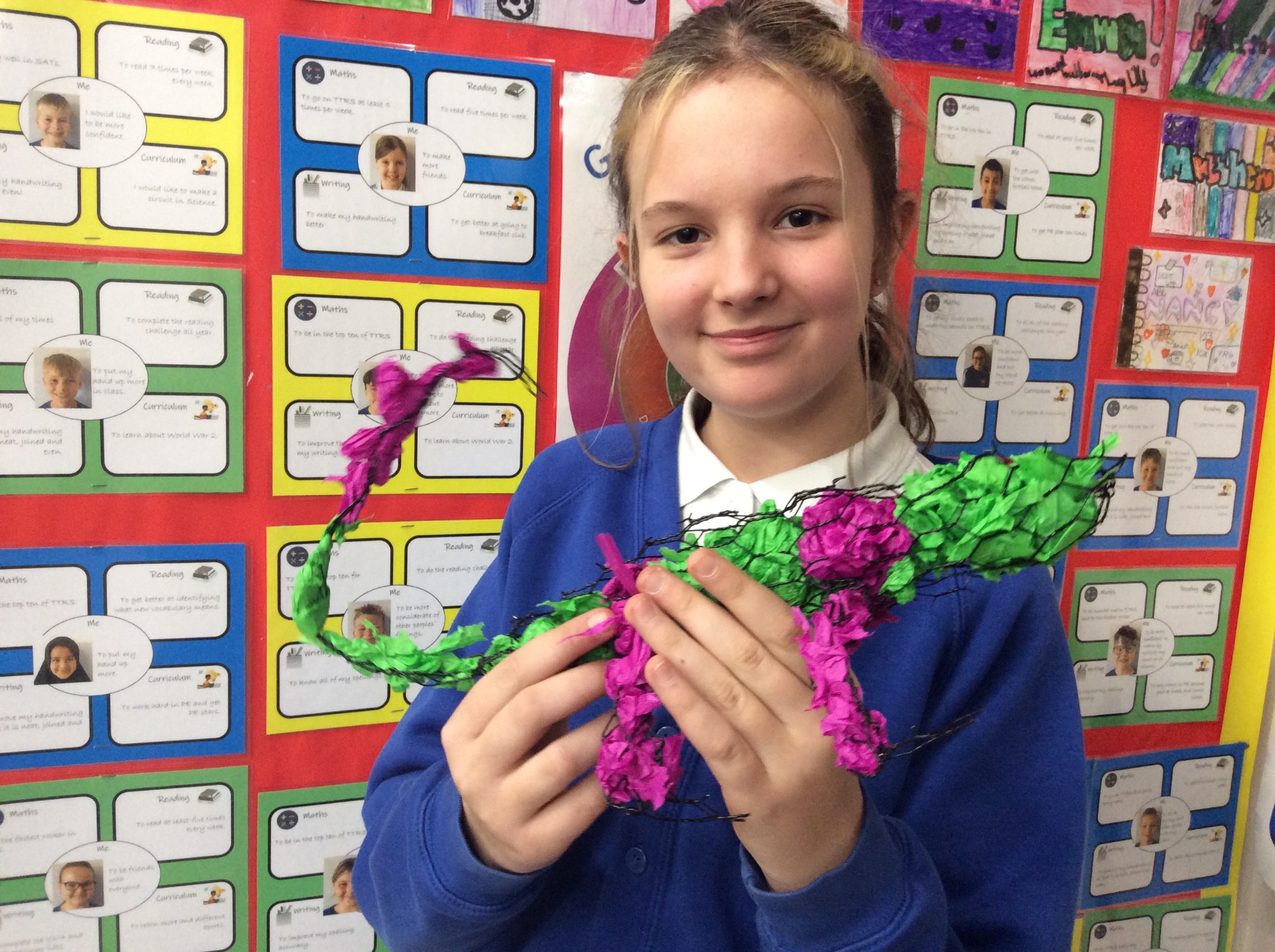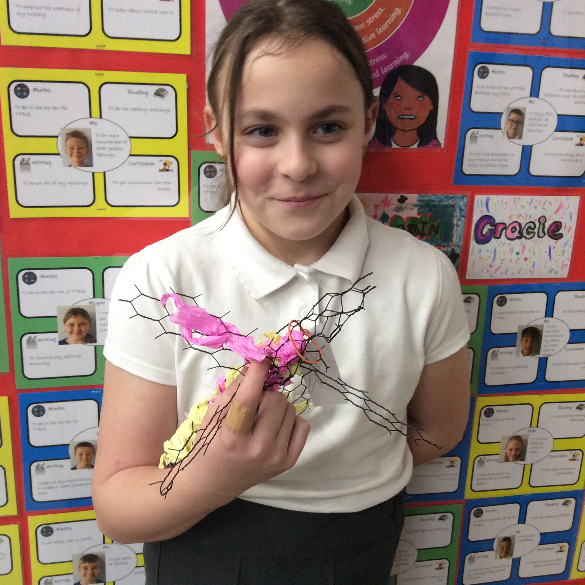 This week, we had lots of fun with Will learning how to create animal wire sculptures. We cut out the wire using a template and wire cutters. We then joined the pieces of the sculpture using pliers and then decorated them with tissue paper. We all made two models and will be covering the second with mod-roc.