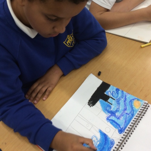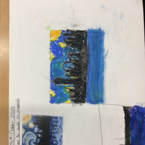 wc 20.10.25 - This week in Art, we have been continuing replicating paintings of London using our chosen medium ready for our final pieces after half term.
