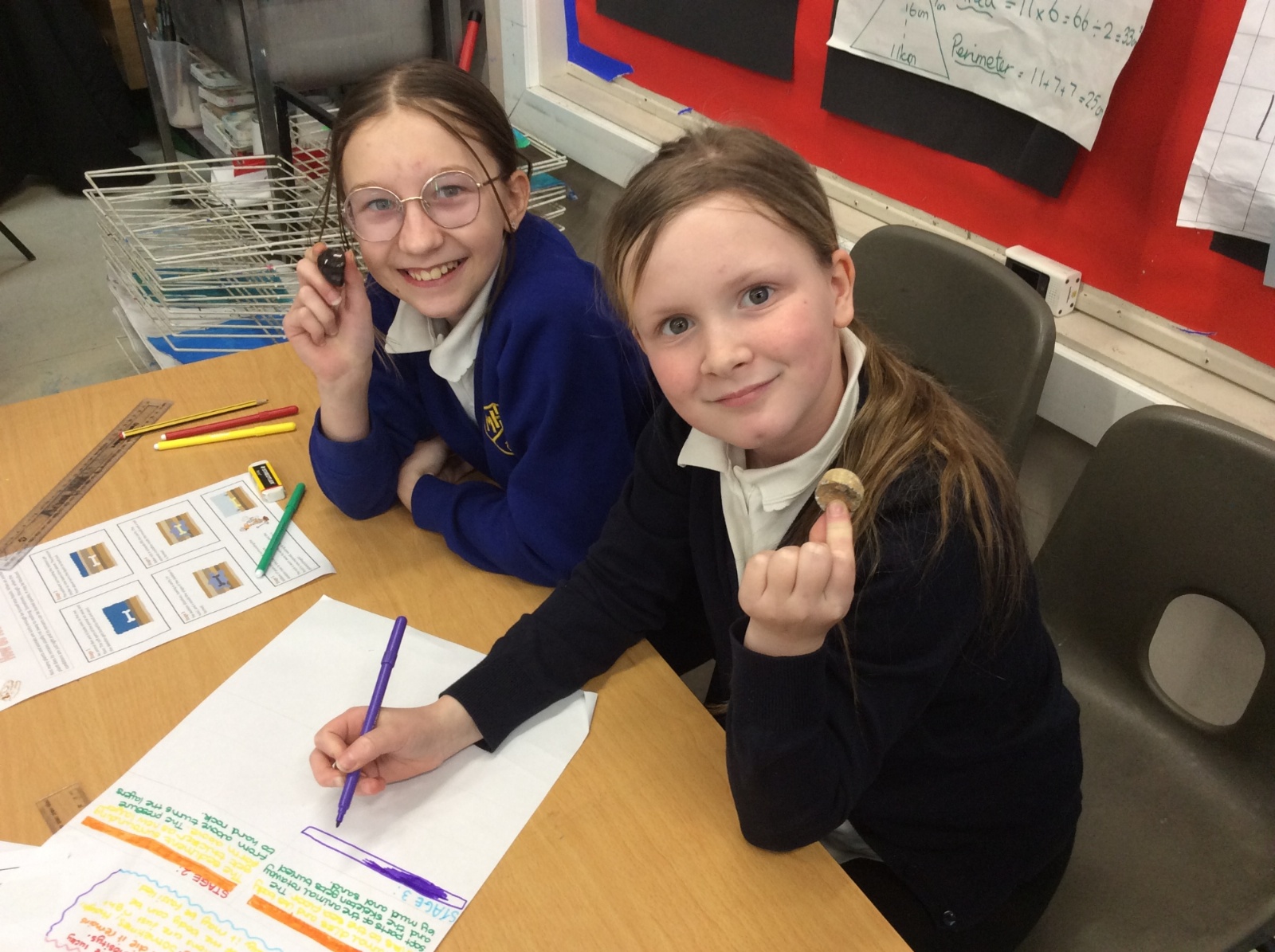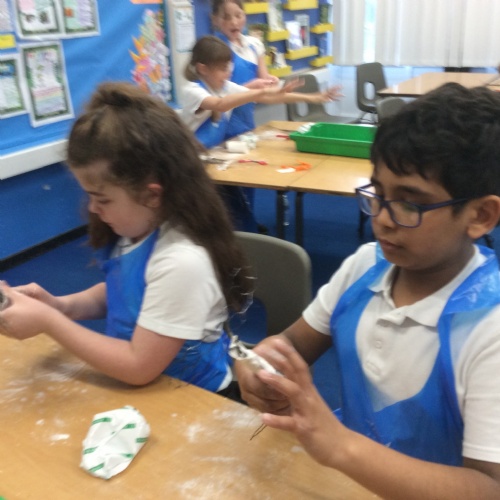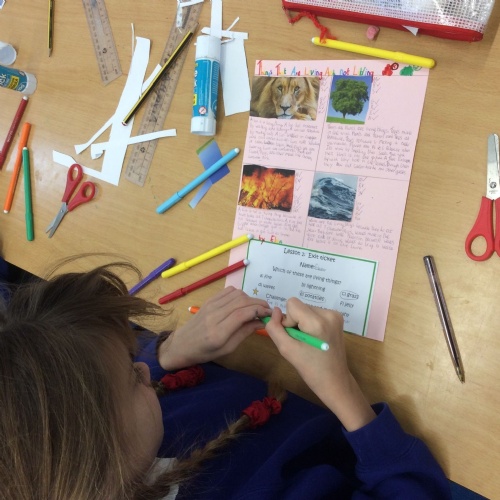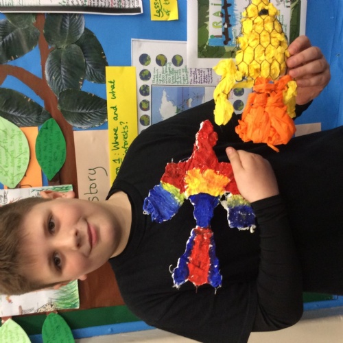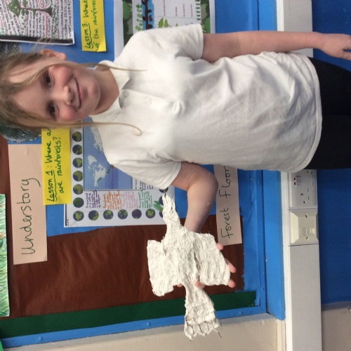 In Science, we found out that when fossils were found in Victorian times, this was when the world found out about dinosaurs. We also found out about Mary Anning, who found lots of fossils of dinosaurs at the beach at Lyme Regis in Dorset. We also found out how fossils can be formed when animals are frozen, when they get stuck in tree sap or through the 'mold and cast' process. As part of Science Week, we also completed a team-work investigation where we found out that good communication is essential to complete a project. We drew pictures with our team mates all holding onto the same pencil with pegs! In Computing, we started work on our own adventure story and created buttons that allows the reader to choose their own version of the story and in RE, we recreated significant stories from the life of Jesus.