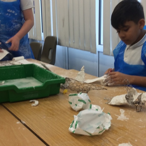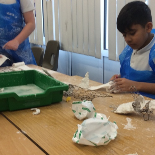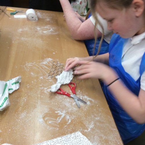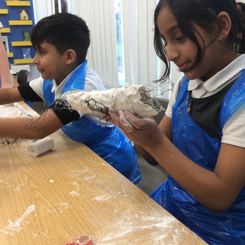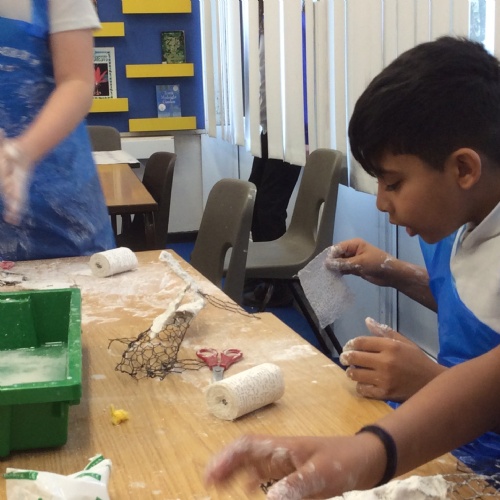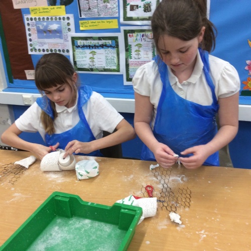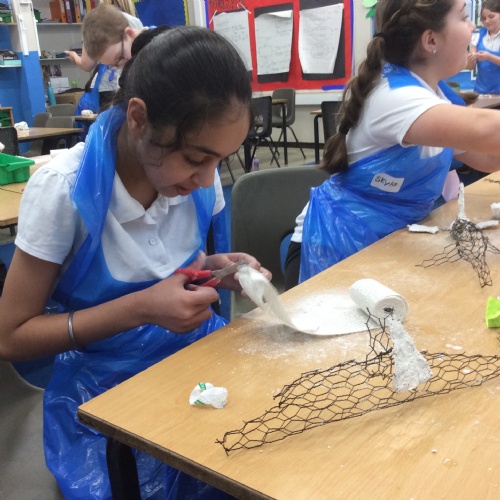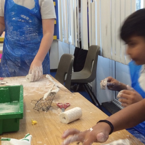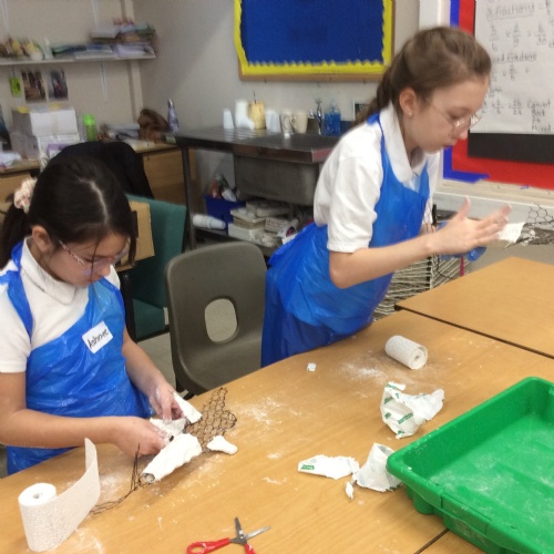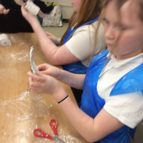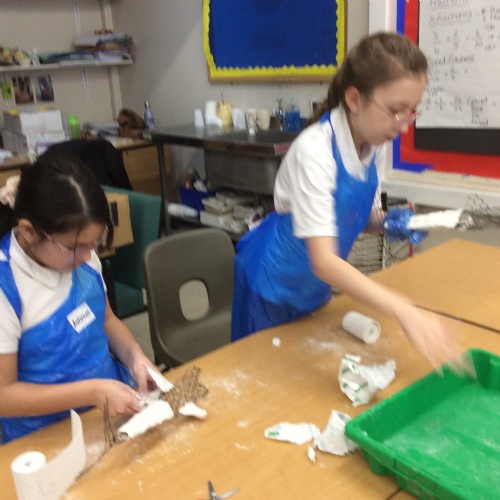 wc 9.2.26: This week in art, we used mod-roc to cover our wire sculptures!