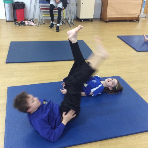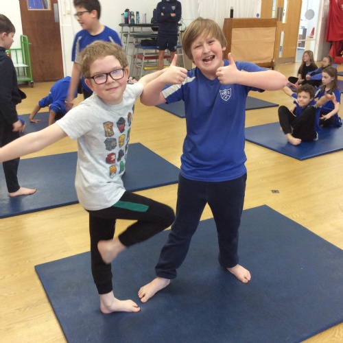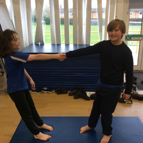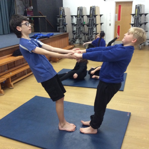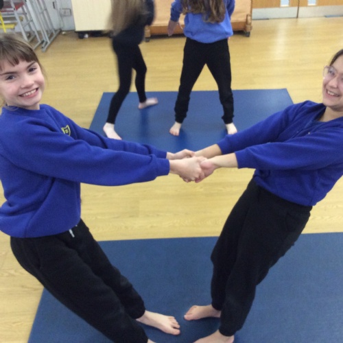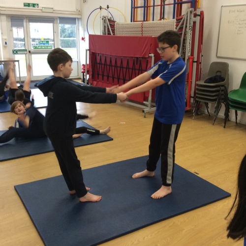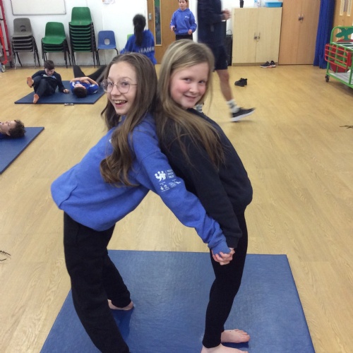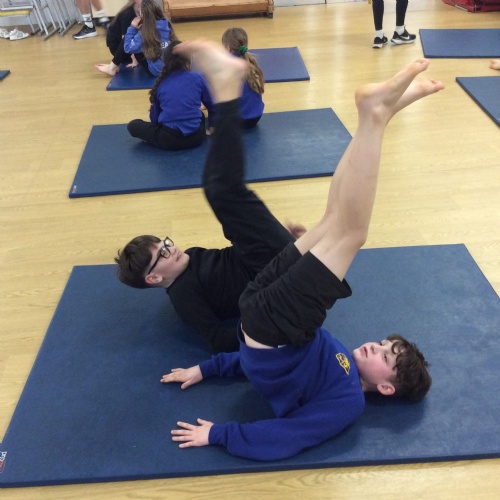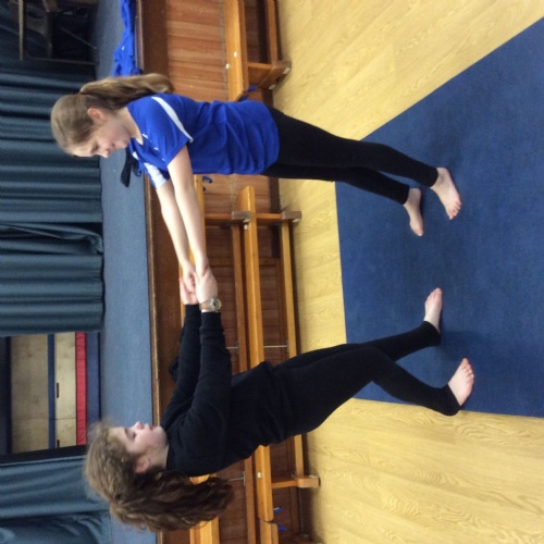 wc 23.02.26 - PE - This week in gymnastics we worked with our learning partner to complete different balancing positions and made up a routine to show the class.