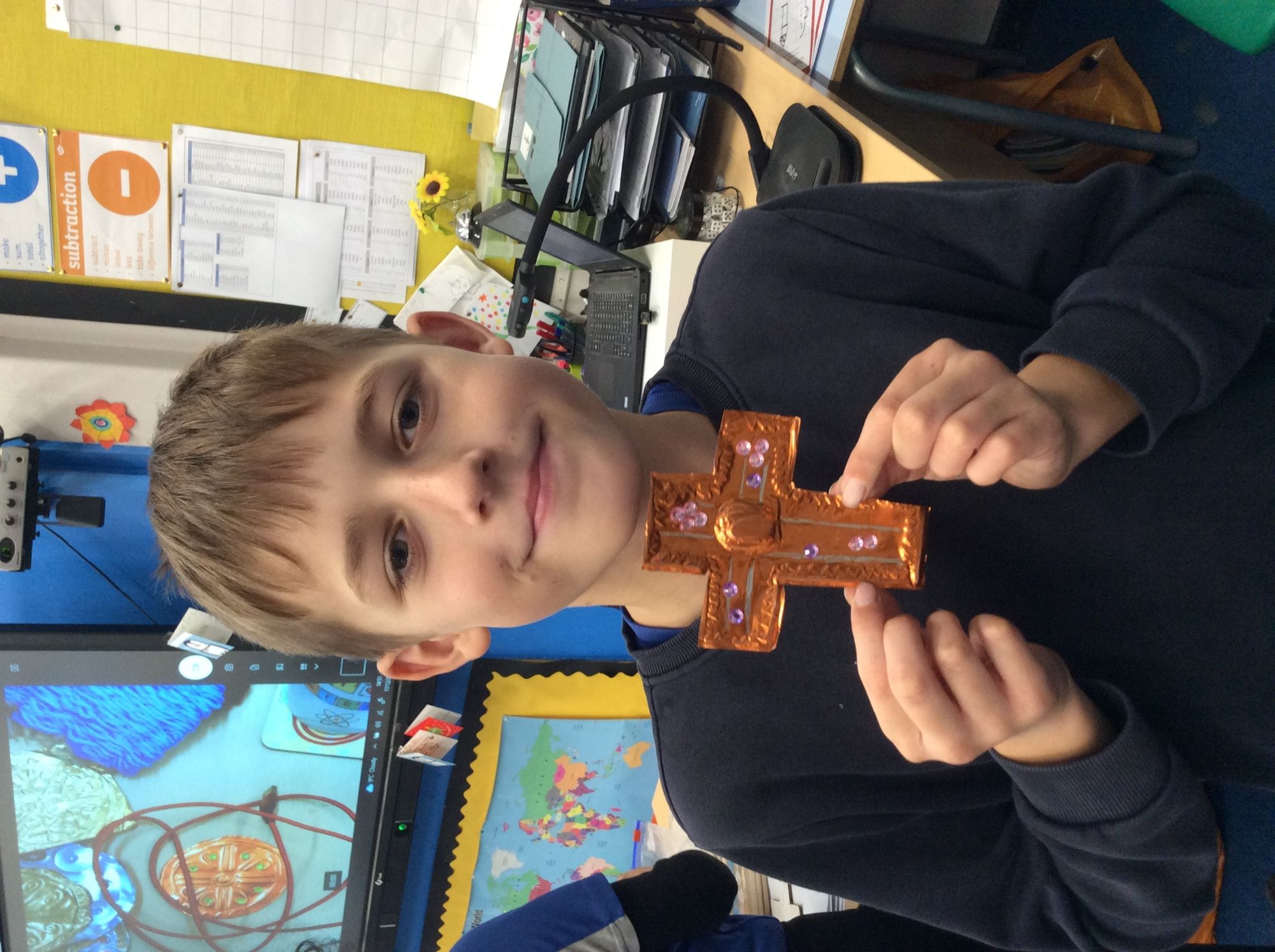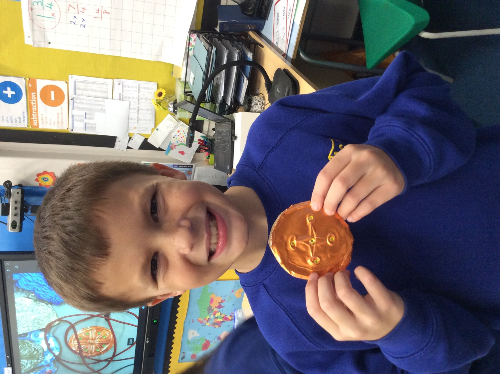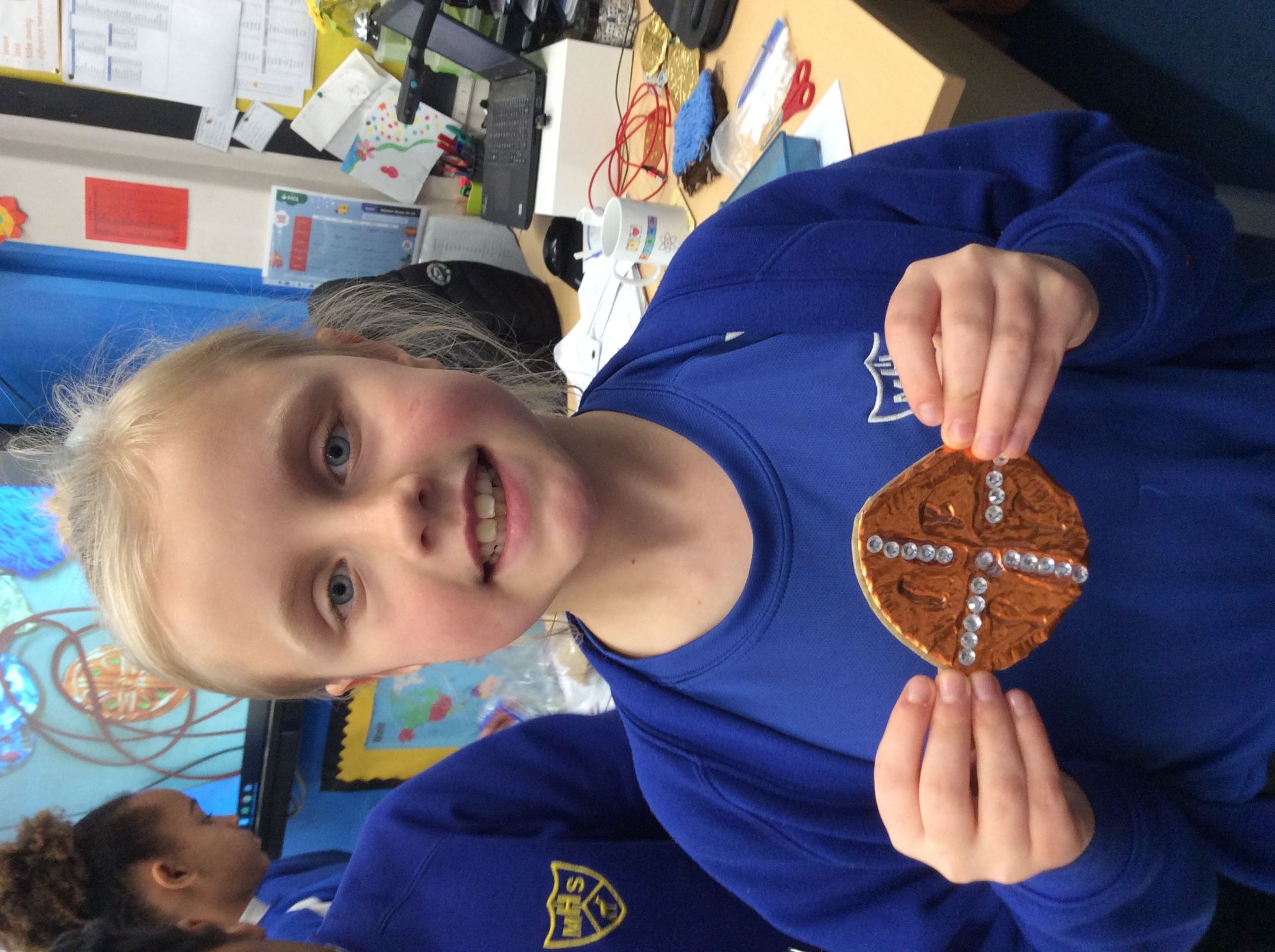 This week in Art we had great fun making our Anglo Saxon jewellery, using embossing techniques.